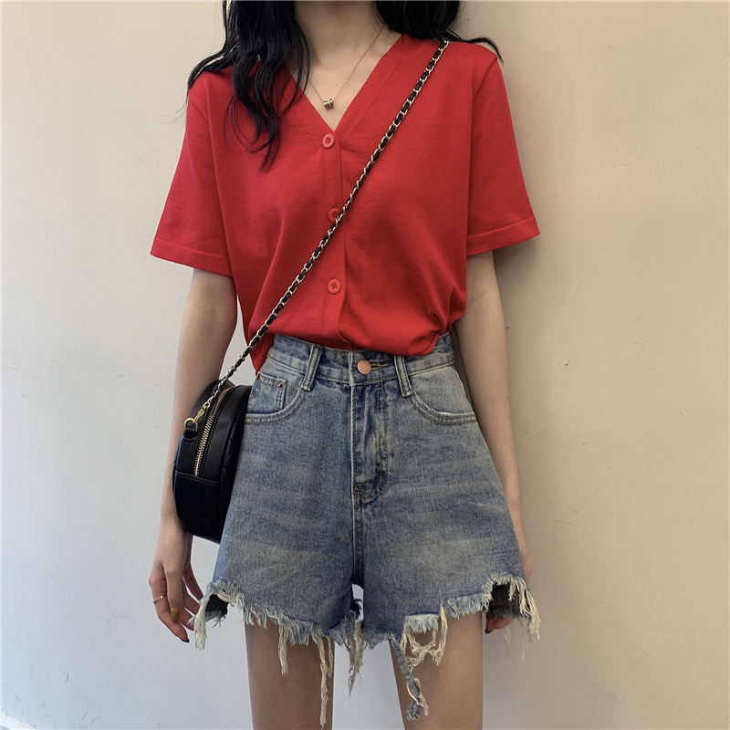半小時前氣質v領薄款打底針織衫,2020夏季新款女裝短款開衫上衣 - 【買一送三】任選4件,僅需NT$1198