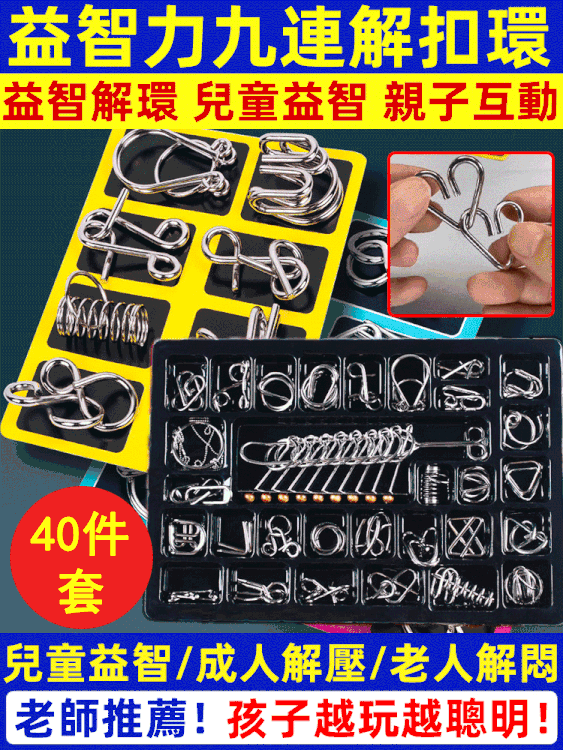 7分鐘前玩過這個孔明連環扣的孩子都比其他孩子聰明!鍛煉孩子空間想象力和邏輯思維能力! - 孔明連環扣益智40入套裝2入組 NT$1350